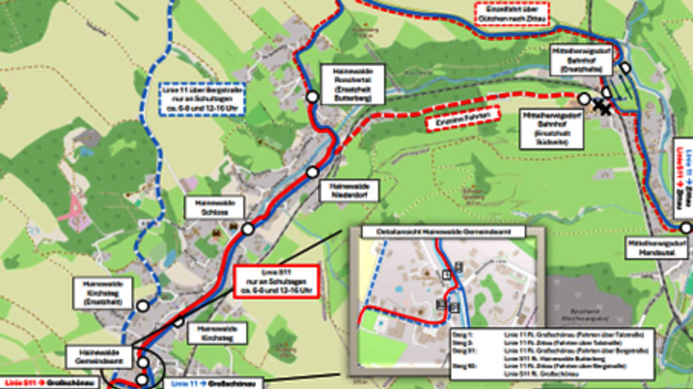 Die Umleitungen und Ersatzverkehre sind auf dem Kartenausschnitt dargestellt.