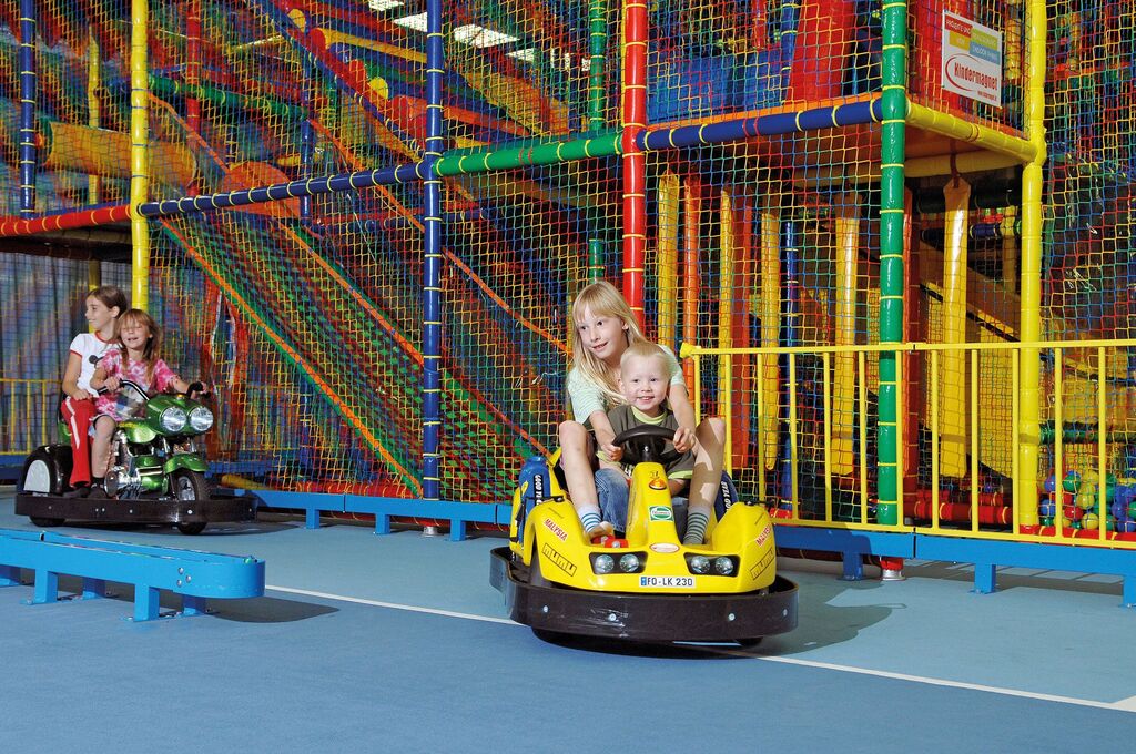 Sollte das Wetter einmal nicht mitspielen, können sich Familien auf die große YOKI AHORN Spielwelt innen mit Fußballfeld, Hüpfburgen, Rutsche ins Bällebad, Piratenschiff, Kinderautos u.v.m. freuen.