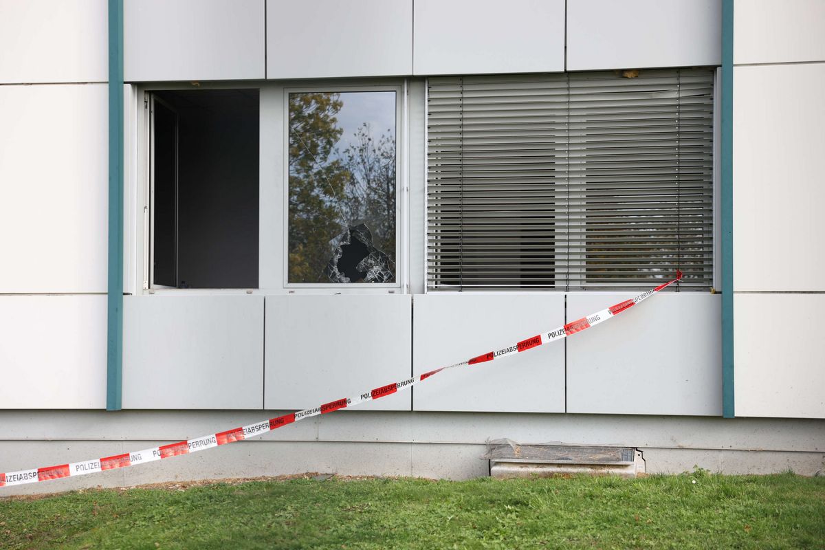 - Die Täter schlugen Fenster am Gebäude ein. Wenig später brannte es.