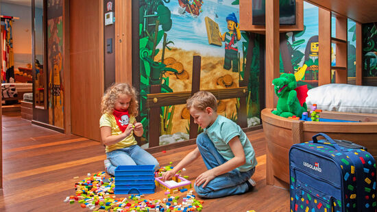 - Zwei Übernachtungen inkl. Frühstück im 4-Bett-Familienzimmer je nach Verfügbarkeit im Pirateninsel Hotel oder der Waldabenteuer Lodge im LEGOLAND Feriendorf