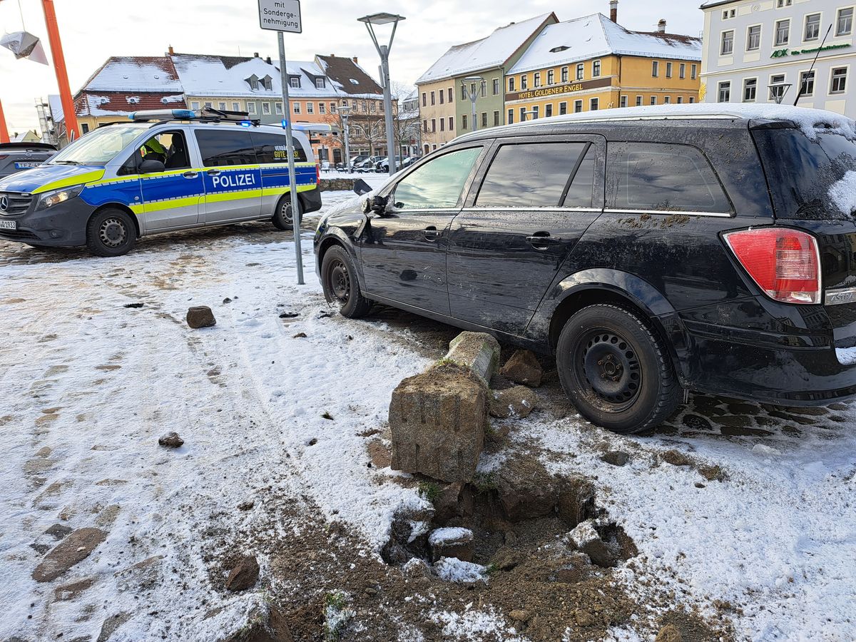 In Geißmannsdorf stoppte der Flüchtige und überfuhr beim Wenden fast einen Polizisten. Daraufhin schoss ein Beamter mehrfach auf die Reifen des Autos. Dennoch raste der Mann weiter. Herbeigeeilte Streifenpolizisten warfen einen Nagelgurt aus. Auf dem Altmarkt in Bischofswerda prallte der Mann dann gegen ein geparktes Auto sowie eine Granitsäule und versenkte das Auto in einer Ausgrabungsstelle der historischen Rathausmauern.