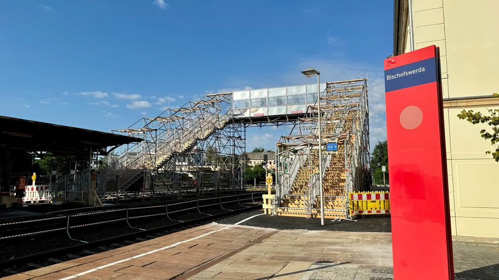 Das scherzhaft genannte Weltwunder von Bischofswerda verschwindet. Die überdimensionale Fußgängerbrücke über die Gleise im Bahnhof wird demnächst abgebaut. Reisende erreichen ab Montag (2.2.) den Mittelbahnsteig 2/3 wieder durch den Personentunnel. Dort wurden zusätzlich zwei Aufzüge eingebaut. Die Sanierungsarbeiten begannen 2024.