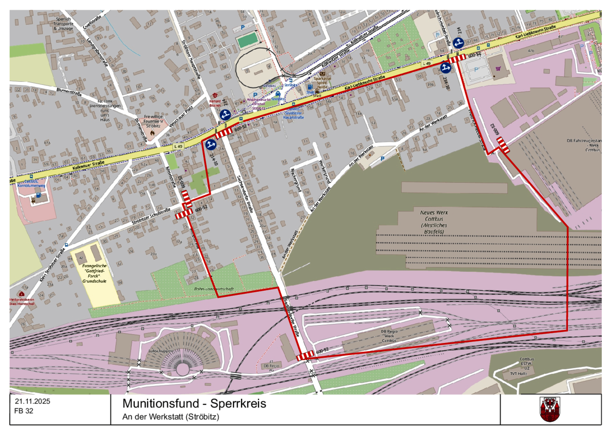 Am Freitagmorgen um 8 Uhr wird ein 300 Meter großer Sperrkreis gezogen. Betroffene können sich in der Turnhalle der Bauhausschule in der August-Bebel-Straße aufhalten. Der Zugverkehr wird ab 10 Uhr eingestellt. Buse und Straßenbahnen fahren.