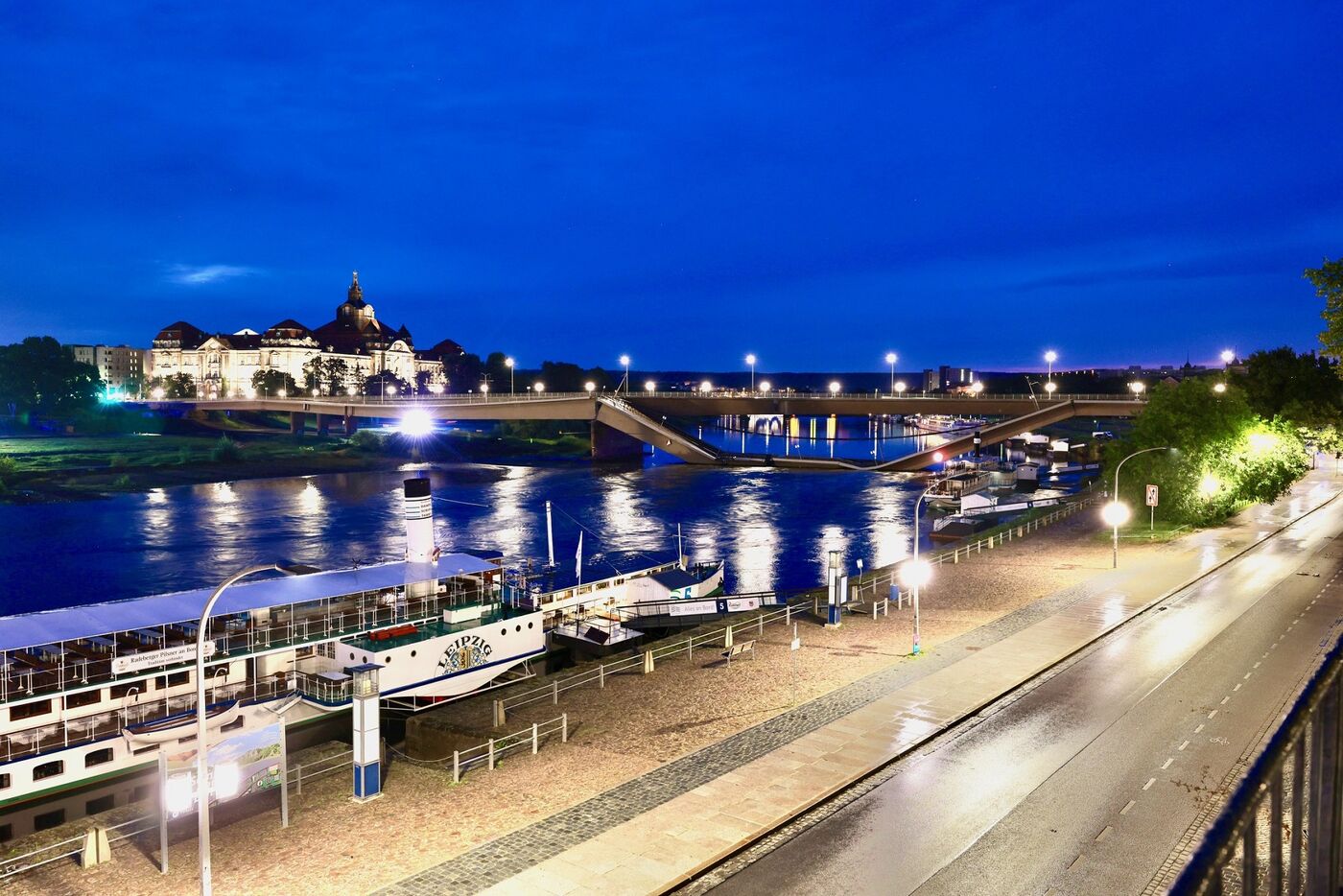 Von der SachsenEnergie heißt es, dass auch sie kurz nach 3 Uhr alarmiert worden. Zwei große und wichtige Fernwärmeleitungen seien an der Brücke geborsten, weshalb es zu dem massiven Wasserverlust kam. Dieser setzte auch das Terrassenufer zu Teilen unter Wasser.