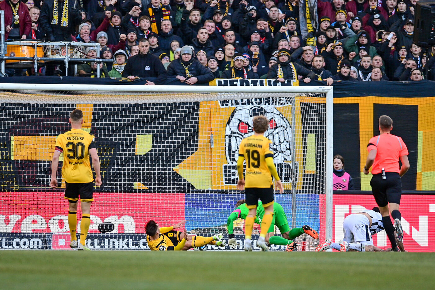 Fußball-Drittligist Dynamo Dresden hat das erste Pflichtspiel 2024 verloren und den möglichen Sprung an die Tabellenspitze verpasst. Gegen den SV Sandhausen unterlagen die Sachsen am Samstag mit 0:1 (0:1). Das entscheidende Tor erzielte vor 25 350 Zuschauern Markus Pink (45.+1). Kurz vor dem Abpfiff sah Sandhausens Alexander Fuchs (88.) die Gelb-Rote Karte. Mit einem Sieg hätte Dynamo auf den ersten Platz vorrücken können, das Jahn Regensburg gegen den SV Verl nicht über ein 1:1 hinauskam. Die Dresdner haben somit als Tabellenzweiter drei Punkte Rückstand auf den Spitzenreiter.
