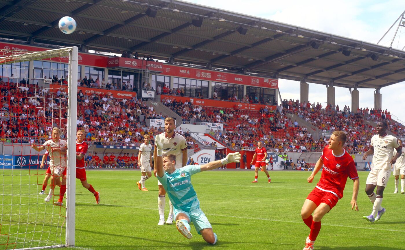 Im ersten Spiel gegen Zwickau dominierte Dynamo über weite Strecken das Geschehen, ließ jedoch erneut die nötige Konsequenz im Abschluss vermissen. Stefan Kutschke traf per Kopf die Latte, auch Lemmer und Fröling konnten ihre Chancen nicht nutzen. In der Schlussphase kam Zwickau auf und drängte sogar auf den Sieg.