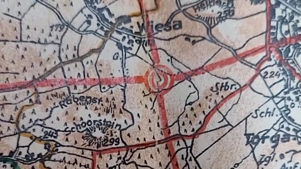 Jasper von Richthofen, Direktor der Görlitzer Sammlungen und renommierter Archäologe, rollt eine Karte von damals aus. Die rote Linie markiert die vorgesehene Trasse.