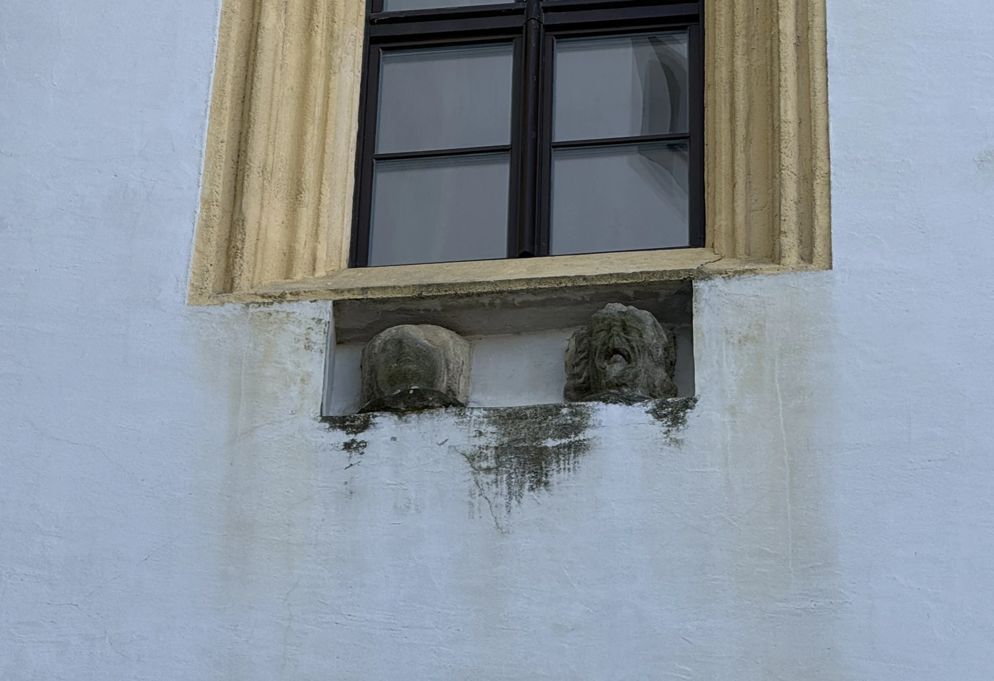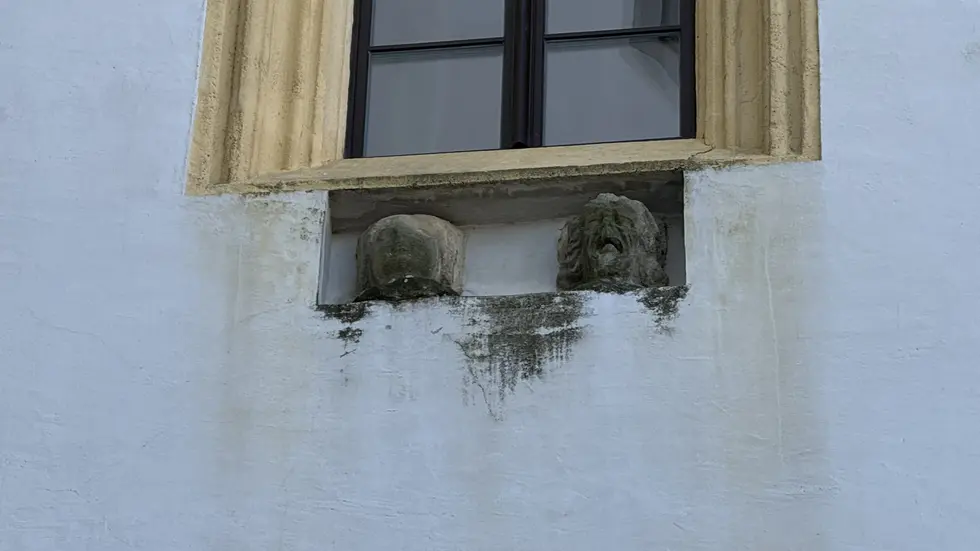 Die meisten gehen achtlos an der Mauer der Bautzener Ortenburg vorbei. Doch wer genau hinsieht, entdeckt sie: Zwei Köpfe.