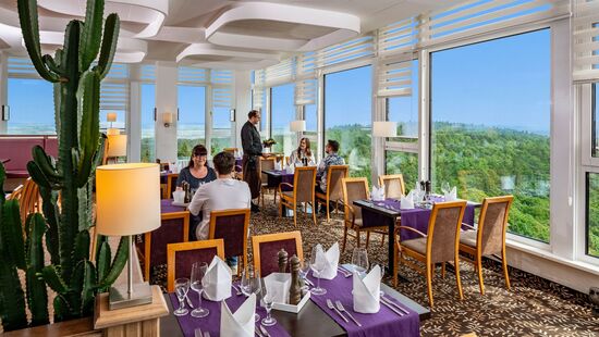 Gastronomisch sorgen das Buffet zur Halbpension und das AZado Restaurant & Café mit Blick auf den Thüringer Wald und südamerikanischen Steaks vom Lavagrill für kulinarische Abwechslung.