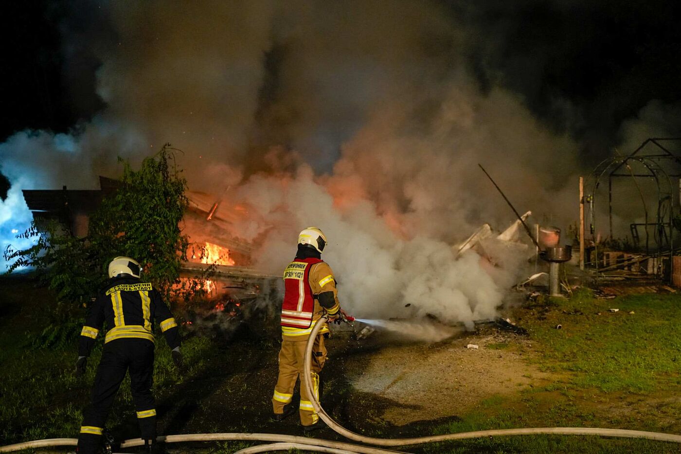 In Laubusch bei Hoyerswerda sind am frühen Morgen eine Laube und ein Pavillon niedergebrannt. Der Feuerschein war weithin zu sehen. Verletzt wurde niemand. Ermittlungen zur Brandursache wurden aufgenommen. Brandstiftung wird nicht ausgeschlossen. Die Polizei schätzt den Schaden wird auf 5.000 Euro. Für die Löschwasserversorgung richtete die Feuerwehr einen Pendelverkehr ein. Mehrere Wehren wurden alarmiert, u.a. aus Lauta und Hoyerswerda.