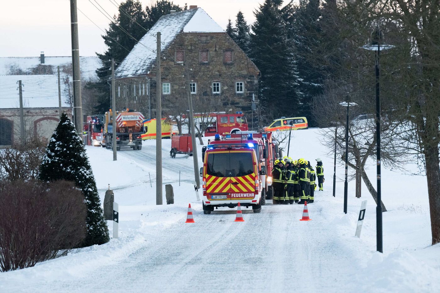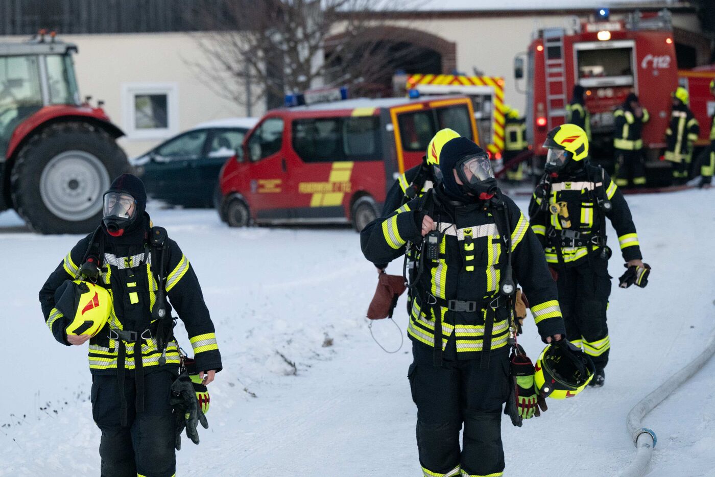 Zahlreiche Feuerwehren rückten an, um den Brand zu löschen. Die Löscharbeiten gestalteten sich durch die extreme Kälte allerdings schwierig: Bei rund minus acht Grad gefror das Löschwasser schnell und machte die Einsatzstelle stellenweise zur Eisbahn. Der Winterdienst musste die Zufahrten streuen.