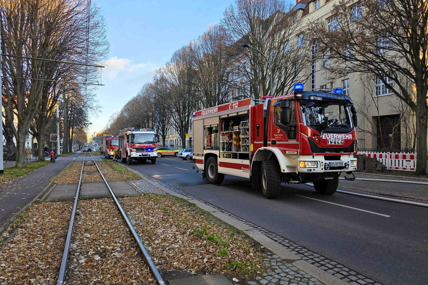 Die Feuerwehr evakuierte das Haus. Bewohner wurden mit speziellen Rettungshauben durch das verrauchte Treppenhaus in Sicherheit gebracht. Der Einsatz einer Drehleiter war nicht möglich.