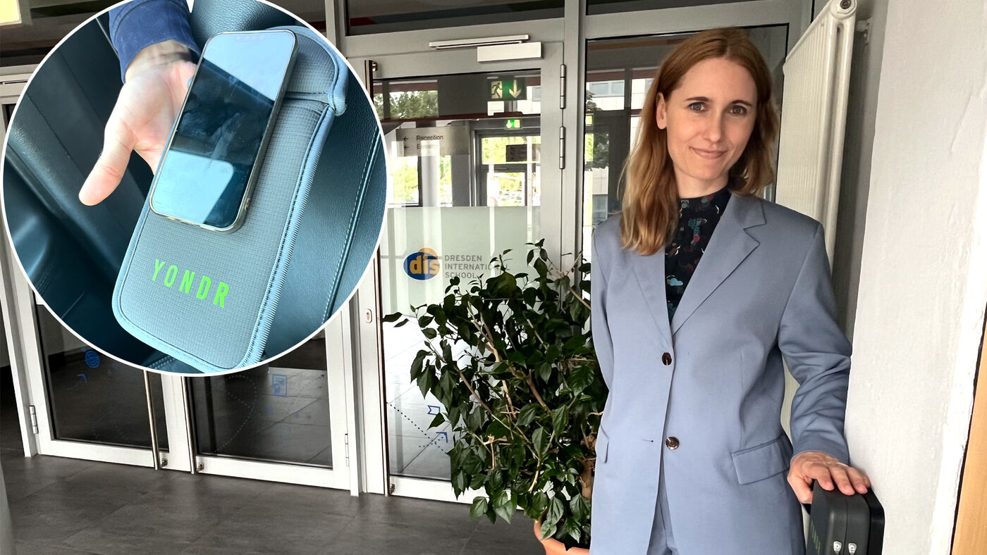 Da ist die Internationale Schule Dresden, die sich durch Schulgebühren trägt, besser ausgestattet. Dort wird ein Laptop oder Ipad als Unterrichtsmittel vorausgesetzt. Und, dass das Handy in der Magnet-Tasche verschwindet...