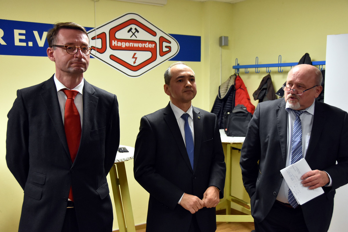 - Innenminister Roland Wöller, Stadtrat Octavian Ursu, OB Siegfried Deinege (von links nach rechts). Foto: Foto: Tele-Lausitz (Danilo Dittrich)