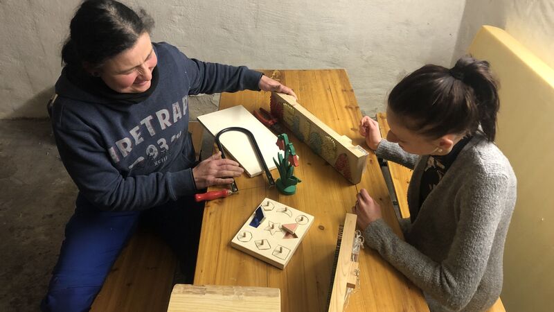 Ziel ist es, die jungen Mütter zu befähigen, ihr Leben künftig mit ihrem Kind selbständig zu gestalten. Durch vielfältige Angebote wird eine tragfähige Mutter-Kind-Beziehung gefördert. Das wird auch in dem „Holzkunst-Projekt“ mit Katja Morenz von „Knopfs Holzwerkstube“ deutlich. Die jungen Frauen fertigen zum Beispiel bunte Namensschilder für ihre Babys. Während des Kurses wird viel geredet. Die Mütter können mal abschalten vom Alltag und sind im Anschluss auch richtig stolz auf ihre kleinen Kunstwerke.