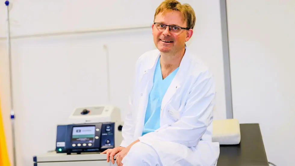 Neues ambulantes Verfahren am Görlitzer St. Carolus Krankenhaus. Ärzte behandeln Krampfadern mit der sogenannten Radiofrequenzablation. Das Carolus ist das erste Krankenhaus in der Region, das diesen Eingriff ohne stationären Aufenthalt möglich macht. Dabei wird die erkrankte Vene unter lokaler Betäubung durch gezielte Wärme von innen verschlossen. Im Gegensatz zum klassischen „Ziehen“ der Venen erfolgt die Behandlung unter lokaler Betäubung. Der Eingriff gilt als schonend. Zudem können mehrere Venen in nur einer Sitzung behandelt werden.