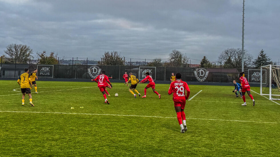 Fußball-Drittligist Dynamo Dresden hat sein Testspiel gegen Regionalligist Rot-Weiß Erfurt souverän mit 6:1 (2:0) für sich entschieden. In der Partie über zweimal 60 Minuten siegten die klassenhöheren Gastgeber in der Walther-Fritzsch-Akademie unter Ausschluss der Öffentlichkeit mit 6:1 (2:0). Ein Doppelschlag durch David Kubatta (17. Minute) und Dmytro Bohdanow (20.) sorgte dabei für eine frühe Führung. Beide Tore resultierten aus Standards.
