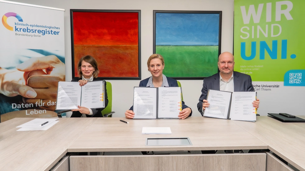 Die Medizinische Universität „Carl Thiem“ Cottbus und das Krebsregister Brandenburg-Berlin gehen gemeinsame Wege. Gestern wurde eine Kooperationsvereinbarung unterzeichnet. Die Krebsforschung in der Region soll digitaler, schneller und vor allem patientenorientierter werden. Medizinische Versorgungsdaten werden künftig strukturiert gesammelt und Forschern über eine zentrale digitale Plattform zur Verfügung gestellt. Sie können die Informationen sicher auswerten, um Krebstherapien in Zukunft noch genauer auf den einzelnen Patienten zuzuschneiden.