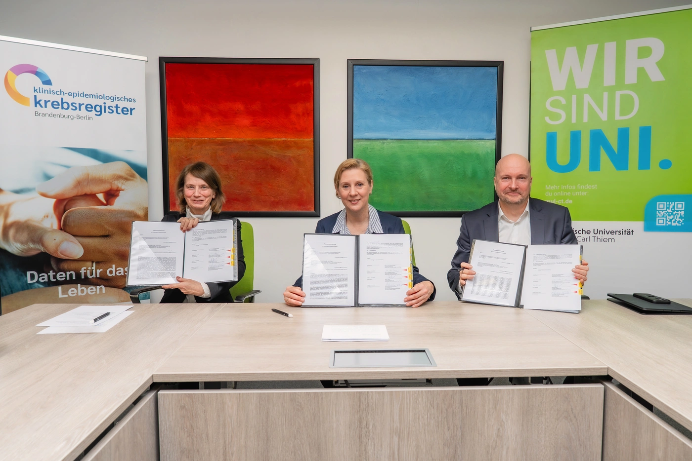 Die Medizinische Universität „Carl Thiem“ Cottbus und das Krebsregister Brandenburg-Berlin gehen gemeinsame Wege. Gestern wurde eine Kooperationsvereinbarung unterzeichnet. Die Krebsforschung in der Region soll digitaler, schneller und vor allem patientenorientierter werden. Medizinische Versorgungsdaten werden künftig strukturiert gesammelt und Forschern über eine zentrale digitale Plattform zur Verfügung gestellt. Sie können die Informationen sicher auswerten, um Krebstherapien in Zukunft noch genauer auf den einzelnen Patienten zuzuschneiden.