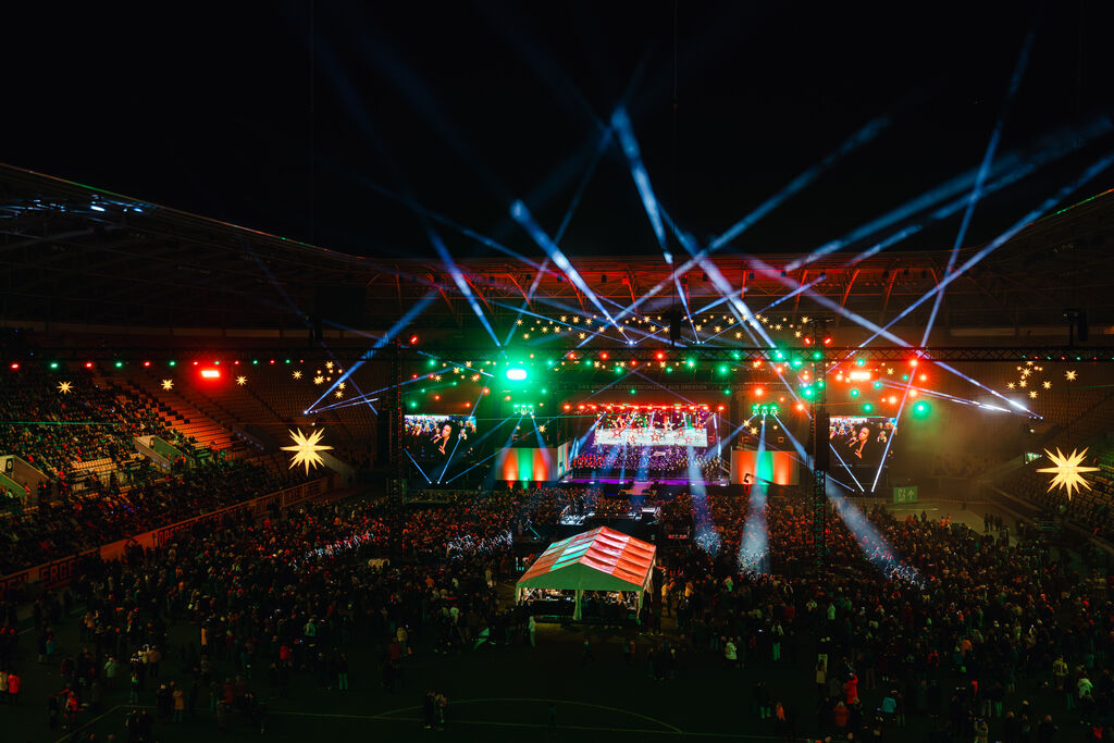 Erleben Sie großartige Solisten sowie stimmungsvolle Weihnachtslieder, die von mehr als 20.000 Zuschauerinnen und Zuschauern intoniert werden – das ist das besondere Flair des Großen Adventskonzertes im Rudolf-Harbig-Stadion.