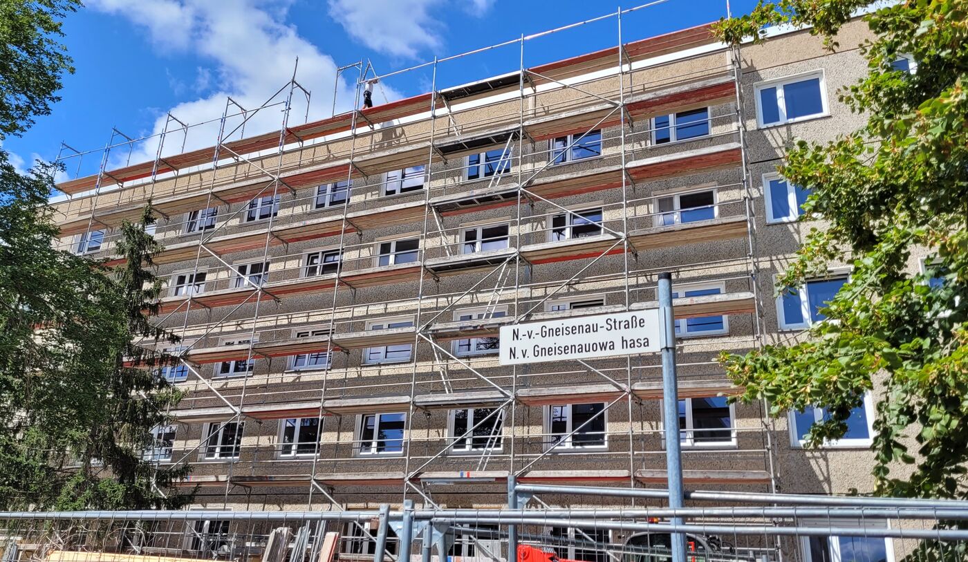 Neues Leben für einen 50-Jährigen in Hoyerswerda. Ein Plattenbaublock an der Neidhardt-von-Gneisenau-Straße wird fit gemacht für die nächsten mindestens 50 Jahre. Der Fünfgeschosser am nordöstlichen Stadtrand soll künftig 58 Pflegewohnungen beherbergen. Die Genossenschaft „LebensRäume“ Hoyerswerda investiert nach eigenen Angaben neun Millionen Euro. „Es ist das größte Bauvorhaben seit den vergangenen Jahren“, so Vorstand Axel Fietzek. Gestern war offizieller Start. Ein Kran wurde aufgestellt.