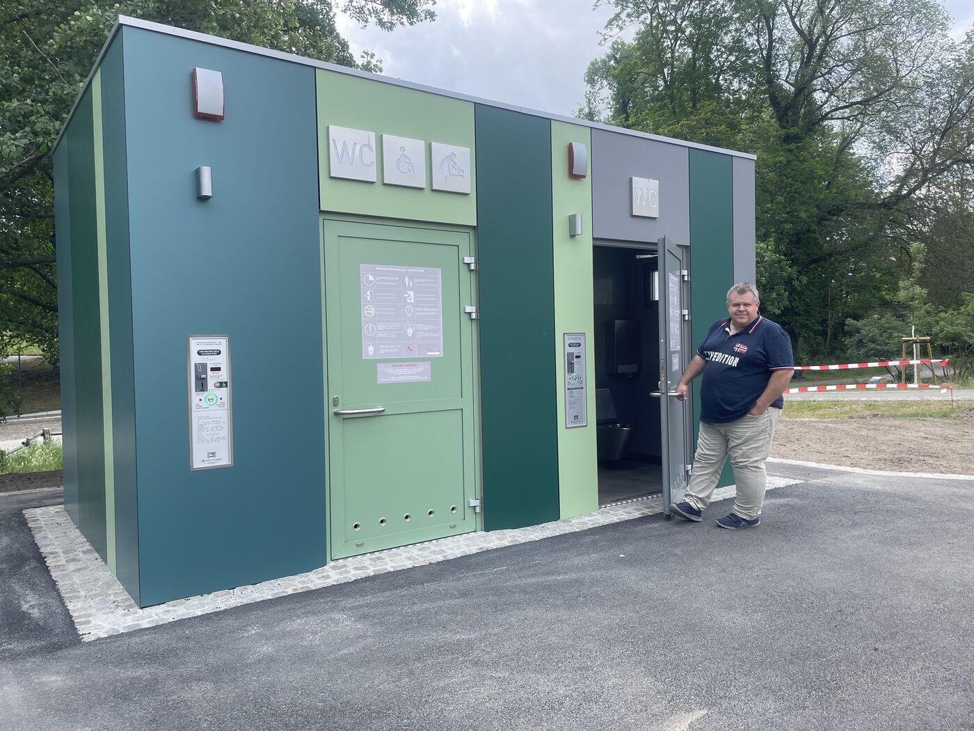 - Hardy Twarz, Mitarbeiter im Fachbereich Planen und Bauen der Stadtverwaltung Spremberg vor der neuen Toilettenanlage in Spremberg.