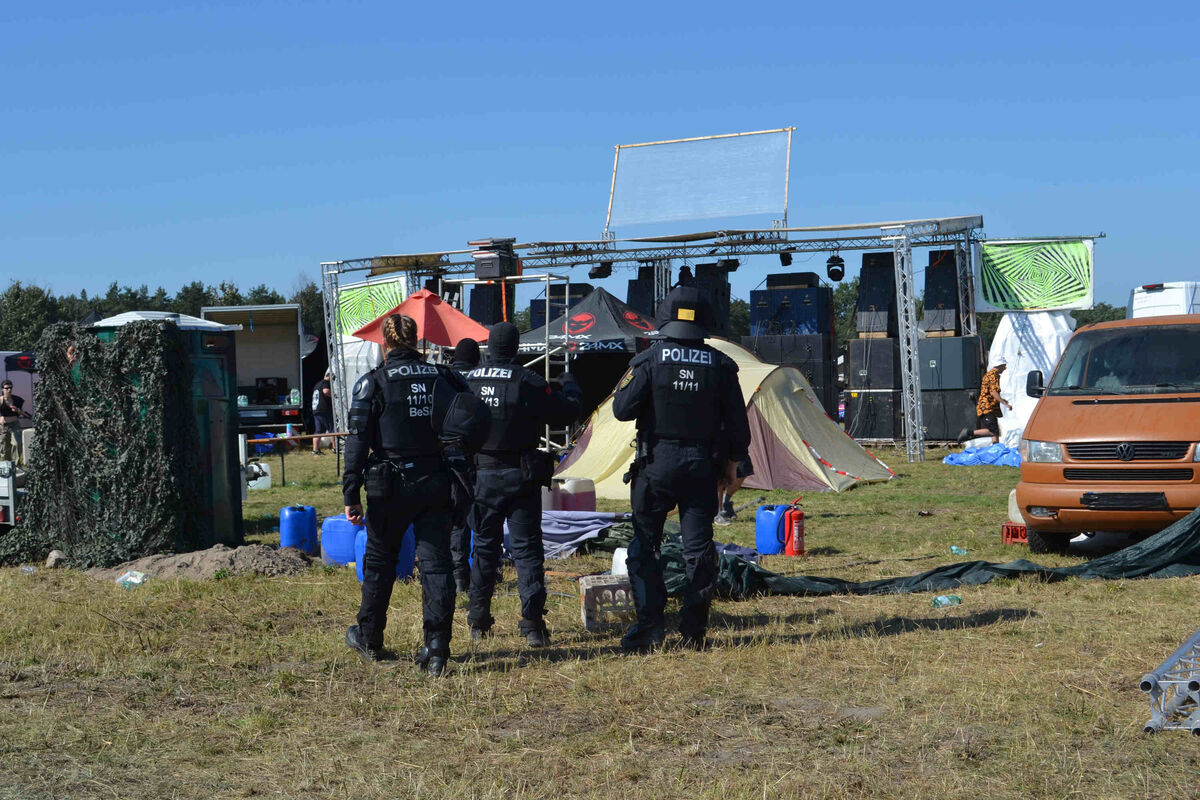 Die Polizei habe am Freitagabend von der Open-Air-Veranstaltung erfahren. Sie sei offensichtlich langfristig geplant worden, da Bühnen, Musiktechnik, Gastroequipment und Notstromaggregate aufgebaut worden seien. Angemeldet sei das Event allerdings nicht gewesen.