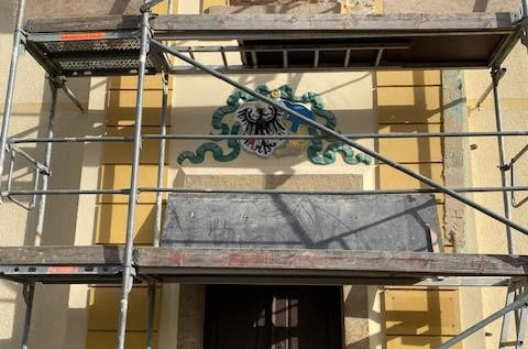Der Wohnblock gehört zur städtischen Wohnungsgenossenschaft und wird derzeit umfassend saniert. In dem Gebäude sollen künftig 45 altersgerechte Wohnungen entstehen. Vor diesem Hintergrund stellte sich für viele die Frage: Wurde hier möglicherweise ein Denkmal entfernt?