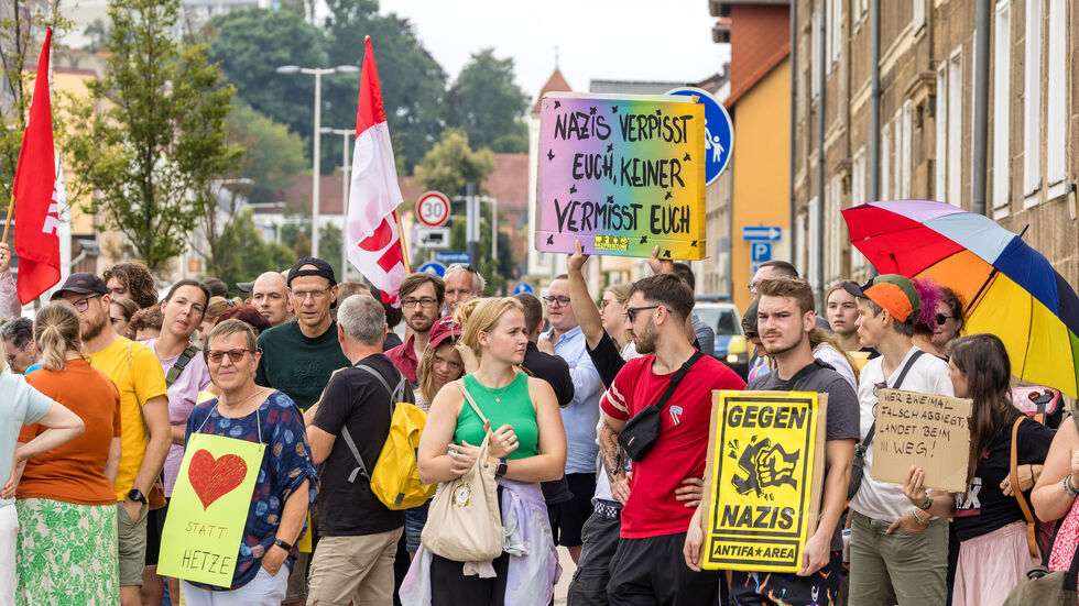Fast 100 Menschen haben gestern in Spremberg gegen eine Versammlung der rechtsextremen Kleinstpartei „Dritter Weg“ demonstriert. Aufgerufen dazu hatte das Bündnis Unteilbar Spremberg. Auf den bunten Pappen stand etwa „Vielfalt statt Einfalt“ oder „Aufstehen, Hinsehen, Nazis im Weg stehen“. Zur Versammlung des „Dritten Wegs“ kamen einem dpa-Reporter zufolge knapp 50 Menschen. Hintergrund ist ein Brandbrief zum Erstarken des Rechtsextremismus, mit dem Bürgermeisterin Christine Herntier bundesweit Aufmerksamkeit erregt hatte. (dpa)