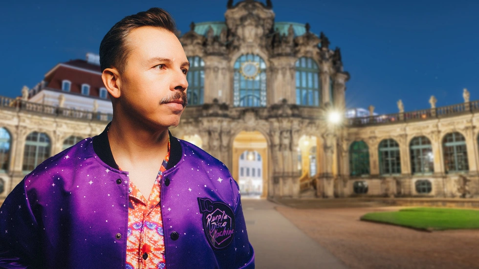 Im Interview hat uns der Dresdner DJ erste Details zur Show verraten: Das Mischpult von Purple Disco Machine wird direkt unterm Kronentor stehen, der Zwinger wird zu Disco-Beats in buntes Licht getaucht und Tino Piontek bringt viele Tänzer und Gast-Sänger mit.