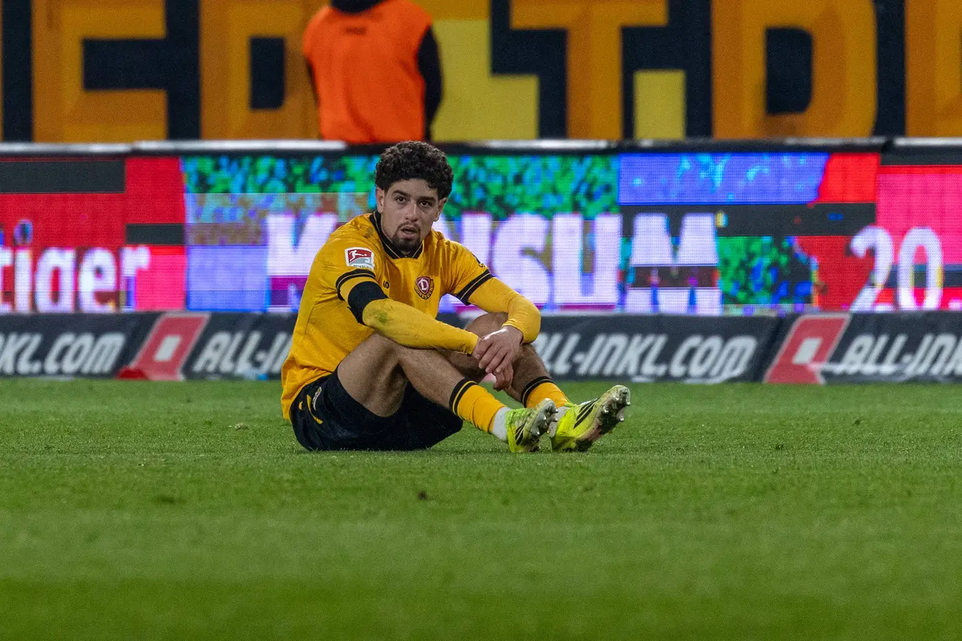 - Dynamo-Spieler Ben Bobzien enttäuscht am Boden nach der 0:1-Pleite gegen Hertha BSC