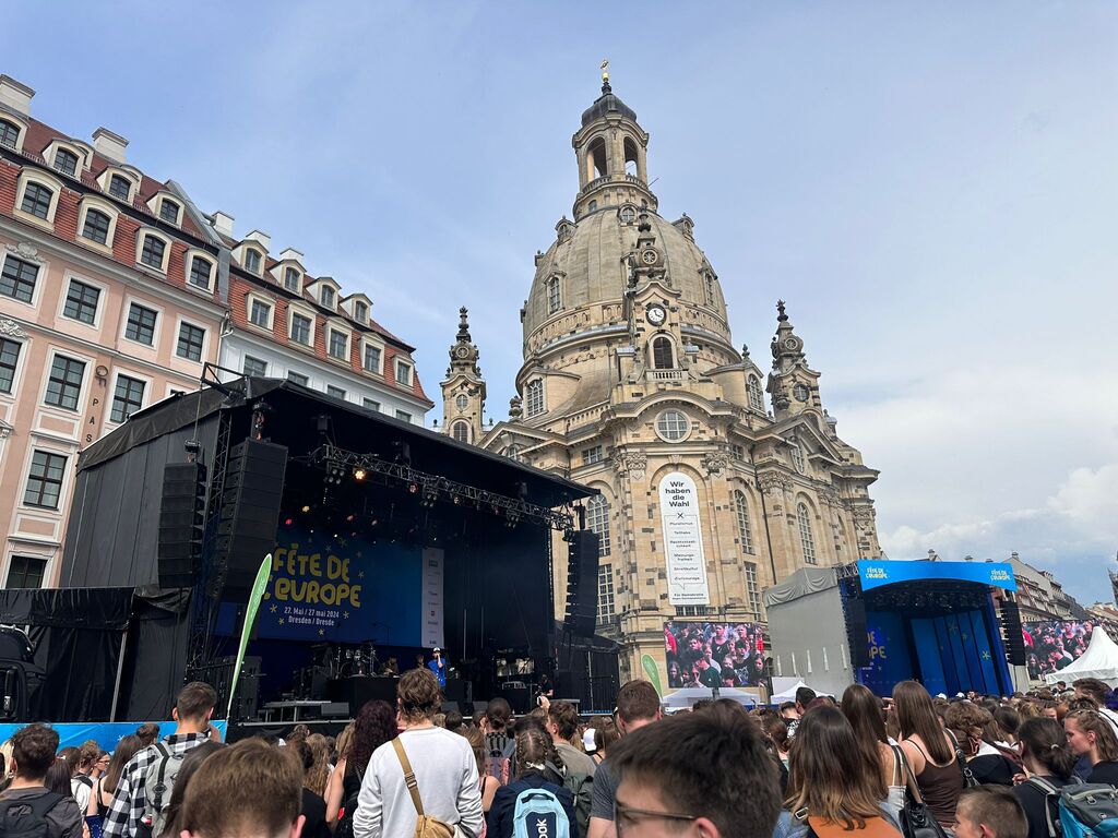 Das europäische Jugendfest lädt ab 15 Uhr auf dem Neumarkt vor der Frauenkirche ein. Trotz angesagtem Regen soll sich das Programm nicht verändern, heißt es von der Staatskanzlei. Derweil ist noch nicht klar, wann genau die Stars eigentlich auf der Bühne stehen.