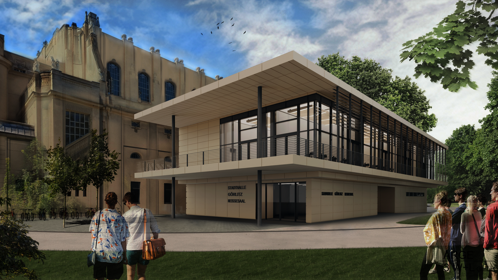 Die Meinung der Görlitzer ist gefragt. Welchen Anstrich soll die Fassade des neuen Stadthallenanbaus bekommen? Zwei Varianten stehen zur Auswahl.