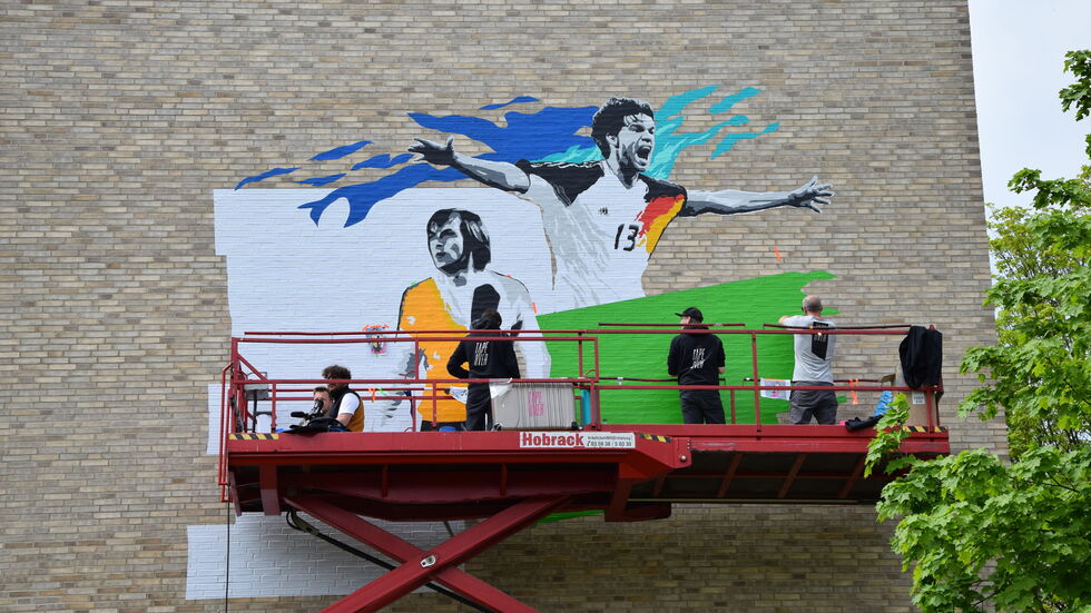 Die beiden Görlitzer Fußballlegenden „Dixie“ Dörner und Michael Ballack bekommen einen Platz in der „Hall of Fame“ des deutschen Fußballs. In ihrer Geburtsstadt wird daran mit einem Streetart-Bild an der Schenkendorff-Sporthalle erinnert.