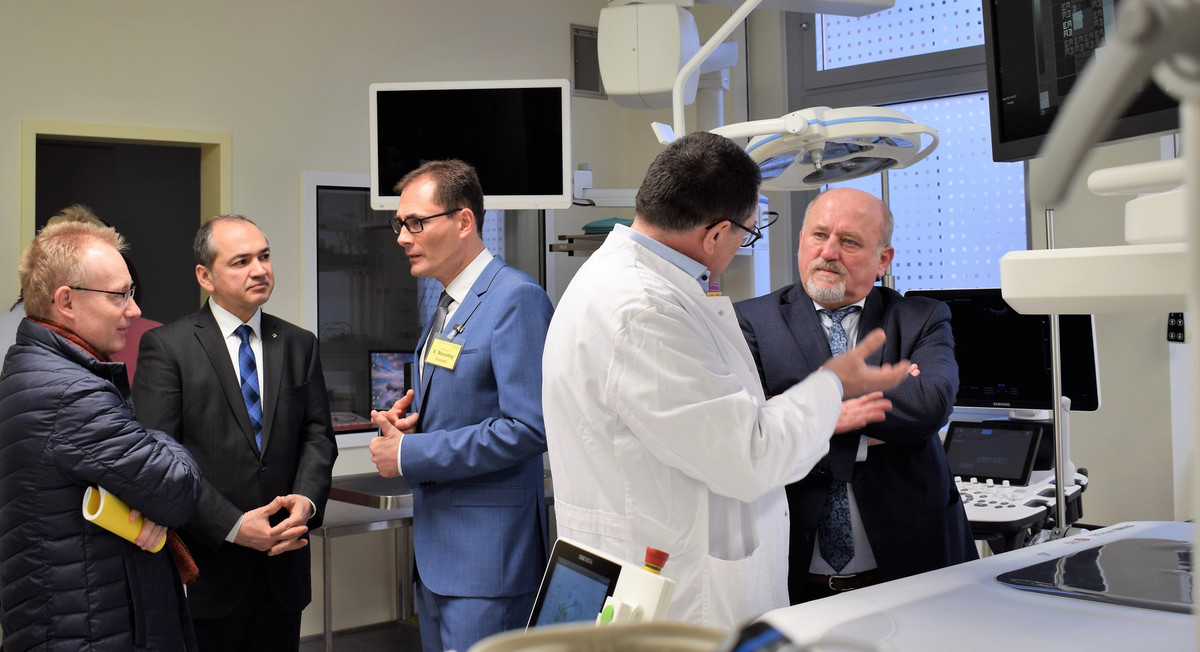 - Chefarzt Dr. Vladimir Novotny (mitte) erklärt den interessierten Gästen die Vorteile des neuen urologischen Röntgenarbeitsplatzes. Foto: Katja Pietsch