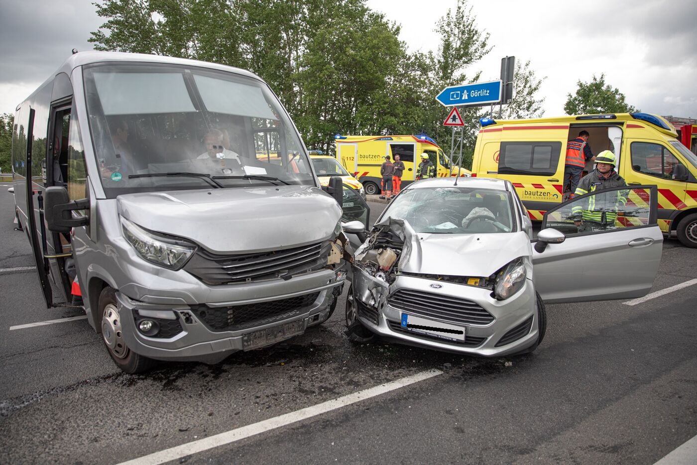 Auf der B 98 bei Burkau ist ein Unfall am Montagmittag gerade so nochmal glimpflich ausgegangen. Als der Fahrer eines Kleinbusses von der A 4 auf die Bundesstraße abbiegen wollte, übersah er einen aus Rammenau kommenden Ford. Es kam zum Crash. Der Fordfahrer wurde schwer verletzt ins Krankenhaus gebracht.