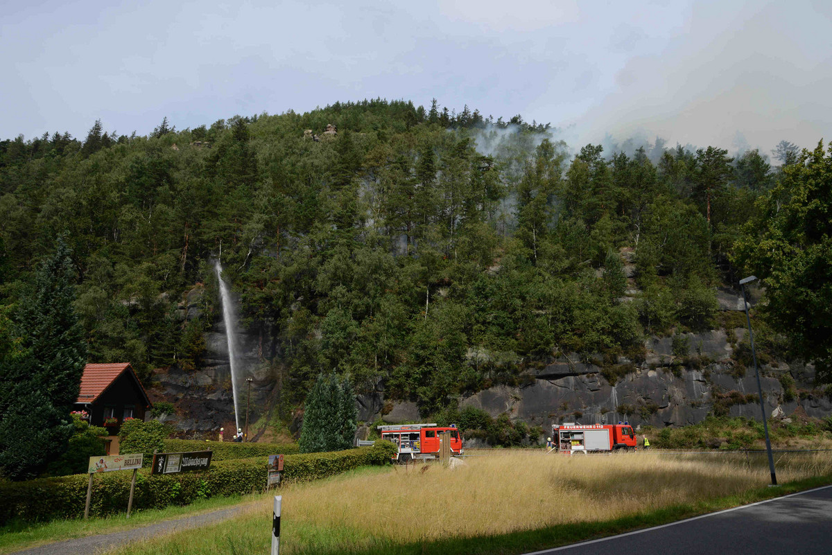 Das Feuer konnte am Nachmittag unter Kontrolle gebracht werden. Ein Löschhubschrauber aus Thüringen nahm Wasser aus dem Olbersdorfer See auf und konnte das Feuer mit gezielten Abwürfen eindämmen. Die Löscharbeiten gestalteten sich allerdings schwierig – ähnlich wie in der Sächsischen Schweiz. Hinzu kamen erhebliche Windböen.