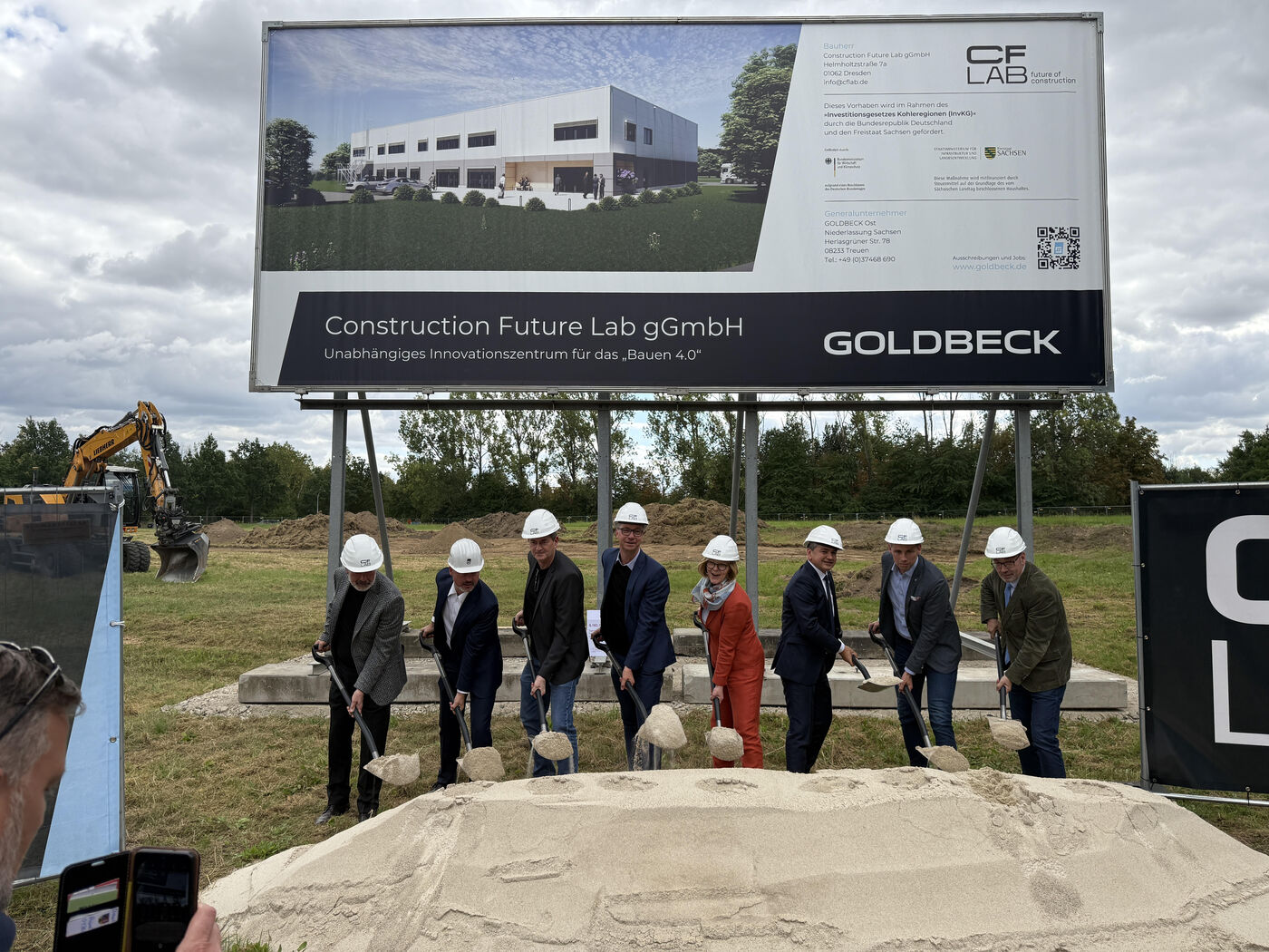 Das CFLab ist eine Tochtergesellschaft der TU Dresden. In dem Zentrum soll künftig erforscht werden, wie digitale Technik, Roboter und 3D-Fertigung das Bauen voranbringen. Beim Spatenstich gab es direkt einen Geldregen: 6,2 Millionen Euro Fördermittel vom Bund und Land. Zusammen mit früheren Zuschüssen sind bereits über 15 Millionen Euro in das Projekt geflossen.
