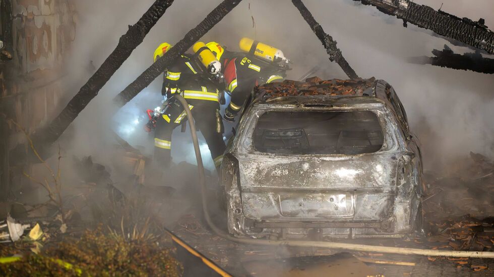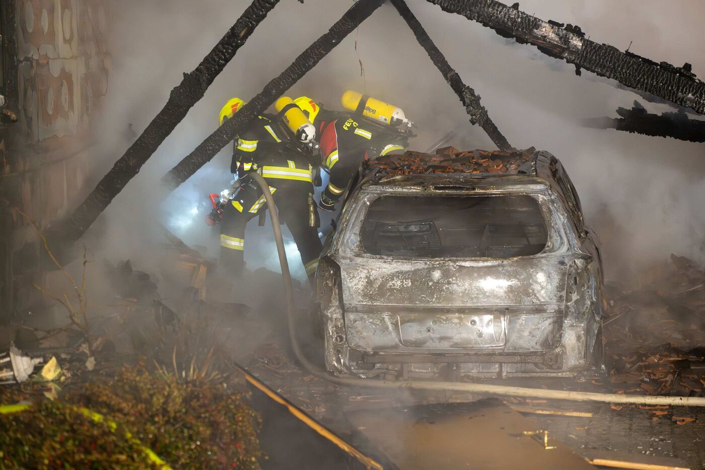 Durch den Brand wurde auch ein Fahrzeug zerstört, das in einem Unterstand abgestellt war. Die Feuerwehr war mit einem Großaufgebot da. Durch die starke Rauchentwicklung löschten mehrere mit Atemschutzmasken ausgerüstete Kameraden. Atemschutztechnik aus Zittau musste nachgefordert werden.