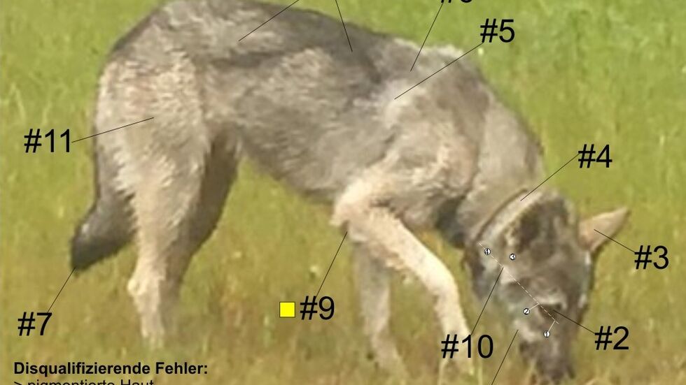 Das Tier auf dem Foto habe lange, kahle Ohren, einen langen Schwanz und eine schwarze Fellfärbung. Das würde für einen Hund sprechen. Dagegen seien der weiße Backenstreifen und die schwarze Routenspitze typische Wolfsmerkmale, so Lebsa