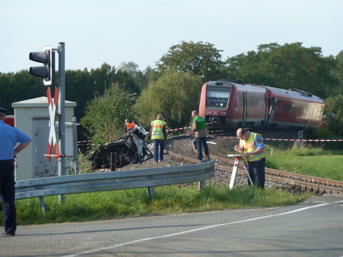 Nach dem schweren Zugunglück bei Bad Lausick sind die entgleisten Waggons am Mittwoch mit Spezialkränen geborgen worden. Drei Wagen sollen ins Instandhaltungswerk Kassel gebracht werden, der vierte, der auf ein Feld gekippt war, müsse zerlegt werden, sagte eine Bahnsprecherin in Leipzig. Die Strecke Geithain-Leipzig sollte mindestens bis Donnerstag gesperrt bleiben. Die Bundespolizei setzte ihre Untersuchungen zur genauen Ursache des Unglücks fort. Sie ermittelt wegen gefährlichen Eingriffs in den Bahnverkehr. Beim Zusammenprall des Regionalzugs mit einem Auto auf einem Bahnübergang waren am Dienstag 21 Menschen verletzt worden.„Die Ermittlungen laufen momentan gegen alle Beteiligten - ob nun als Zeuge oder als Unfallverursacher“, sagte der Sprecher der Bundespolizei, Torsten Henkel. Über den tatsächlichen Unfallhergang herrsche weiterhin Unklarheit. Sicher sei nur, dass es vor dem Bahnübergang einen Auffahrunfall gab, bei dem ein Kleinwagen auf die Gleise geschoben wurde. Dessen Fahrer kam gerade noch rechtzeitig aus dem Auto heraus. Sechs schwer verletzte Insassen des Zuges waren auch am Mittwoch noch im Krankenhaus, bei keinem bestand Lebensgefahr. Der Lokführer erlitt einen Schock, musste aber nicht in einer Klinik aufgenommen werden.Momentan gehen Polizei und Staatsanwaltschaft davon aus, dass das Unglücksauto vor dem Bahnübergang zunächst stehenblieb, bevor ein auffahrender Transporter es auf die Schienen schob. „Wir prüfen zurzeit aber auch, ob das rote Warnsignal zum Zeitpunkt des Auffahrunfalls bereits geleuchtet hat und ob der Kleinwagen eventuell gar nicht stand, sondern langsam auf die Schranke zugerollt ist“, sagte Henkel. Anders als anfangs gedacht, war die Halbschranke aber nicht geschlossen. Die Schranke sei unbeschädigt, berichtete Henkel.Auch über den Ablauf der Rettung des 64 Jahre alten Fahrers aus seinem Auto wurde spekuliert. Auf die Frage, ob möglicherweise der 29 Jahre alte Fahrer des Transporters den Mann vor dem heranfahrenden Zug gerettet hat, sagte Henkel: „Zum jetzigen Zeitpunkt gehen wir davon aus, dass ihm Passanten geholfen haben.“In Bad Lausick liefen derweil die Bergungs- und Aufräumarbeiten an der Unfallstelle weiter. Bis zum Nachmittag waren zwei Waggons abtransportiert, zwei weitere Wagen standen noch dort. Der umgekippte Waggon wurde auf dem Feld aufgerichtet. Nach Bahnangaben müssen rund 100 Meter Gleis mit der dazugehörigen Verkabelung und zerstörten Schwellen erneuert werden. Der Gesamtschaden sei noch nicht zu beziffern. Zwischen Geithain und Leipzig fahren Busse als Schienenersatzverkehr.Hintergrund:Das schwere Zugunglück bei Bad Lausick ist bereits der dritte Unfall auf der Strecke zwischen Chemnitz und Leipzig innerhalb weniger Jahre. Bereits im Dezember 2009 war der hintere Triebwagen einer Regionalbahn während der Fahrt nahe Bad Lausick entgleist, weil lockere Schrauben die Aufhängung des Motors beschädigt hatten. Verletzt wurde damals keiner der 61 Insassen. Ohne Verletzte endete auch der Unfall ein Jahr später: Wegen einer defekten Kupplung waren hier zwei Triebwagen eines Regionalexpresses während der Fahrt ungeplant getrennt worden. Der Zug musste bei Bad Lausick zwangsgebremst werden, beide Teile fuhren danach getrennt weiter.